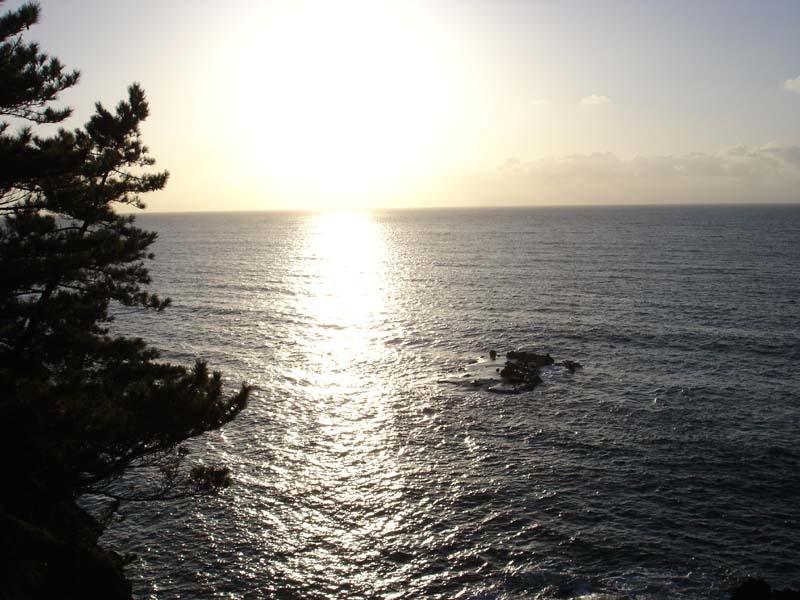能登半島の日本海側を北上する。 そろそろ夕方かなぁ。 太陽がだいぶ西に傾いてきた。 日本海側走っているので、もしかしたら水平線に沈む夕日が見られるかも!?