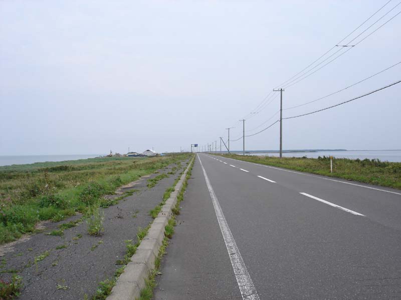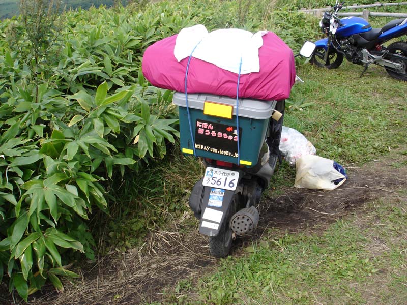 がっくりきて、もう一度眠る。 7時に目が覚めた。 相変わらず雨が降っている。 携帯で今後の天気を調べると、水曜日まで雨らしい…… まさか3日間もここにいるの……? 半分諦めモード。 トイレはいいとして水がないのは困るなぁ。 3日間もいるのなら、食料なども買い込んでおかなくては…… 8時ごろレインコートを着て、7kmくらい先にある「浦幌町」の市街地に向かう。 コンビニとスーパーで食料を買い込む。 カロリーメイト、インスタントラーメン、カレー、パン。 それとミネラルウォーターも購入した。 これだけあれば3日間は過ごせるな。 雨の中テントに戻る。