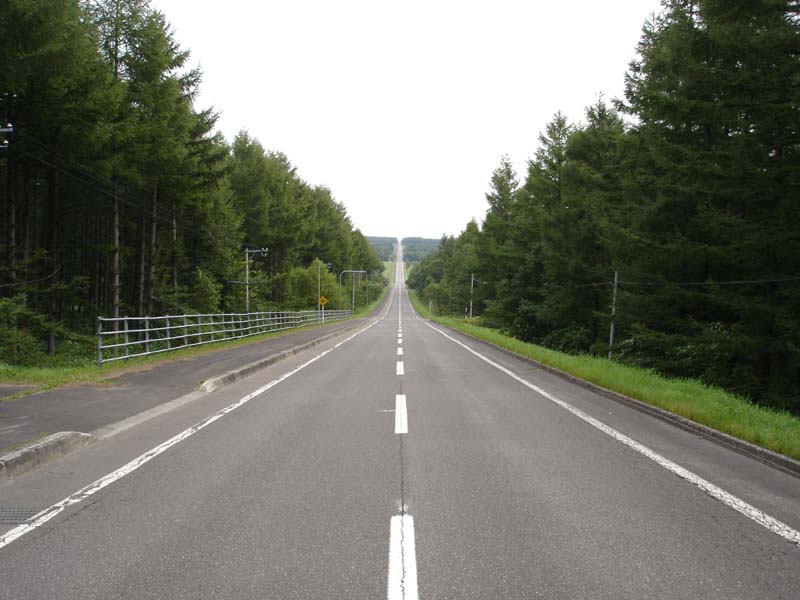 国道を南方面に走る。 けっこうトラックが多くて怖い。 道路は思ったよりも乾燥していて、こっちの方は早く雨が止んだのかなと思った。 しかし……2時間も走らないうちに再び雨が降り出してきてしまった。 レインコートを着て走り続けるが、いつまでも走ってるわけにはいかない。