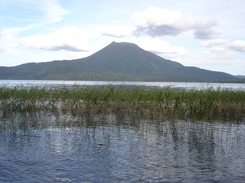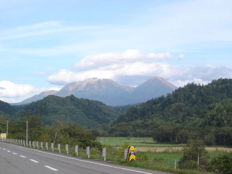 途中から241号線に入り阿寒湖を目指して一直線に走る。 阿寒湖まであと50km…… 雌阿寒岳を見ながらひたすら阿寒湖に向かう。