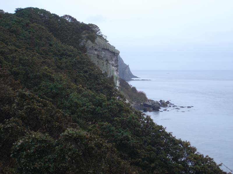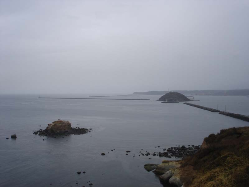 予想していた通り、今日は天気が悪い。 起きたときはほとんど降っていないくらいだった。 うーん、今日は移動するの無理っぽいなぁ。 だけどここ(道の駅横の公園)にテントを張りっぱなしもイヤだな。 地図でキャンプ場を調べてみると、ちょっと離れたところに無料キャンプ場がある。 そこに移動しよう。 いつ雨が降り出すかわからないので、急いでテントを撤収。 室蘭はまだ観光したいところがあるので、また来よう。 とりあえず、すぐ近くに岬があるので行ってみる。 しかし向かっている途中に雨が降り始めてきた。 岬の駐車場についた頃にはビショビショ。 レインコートを着て岬に向かってみる。 しかし雨のためあまり景色がよくない。