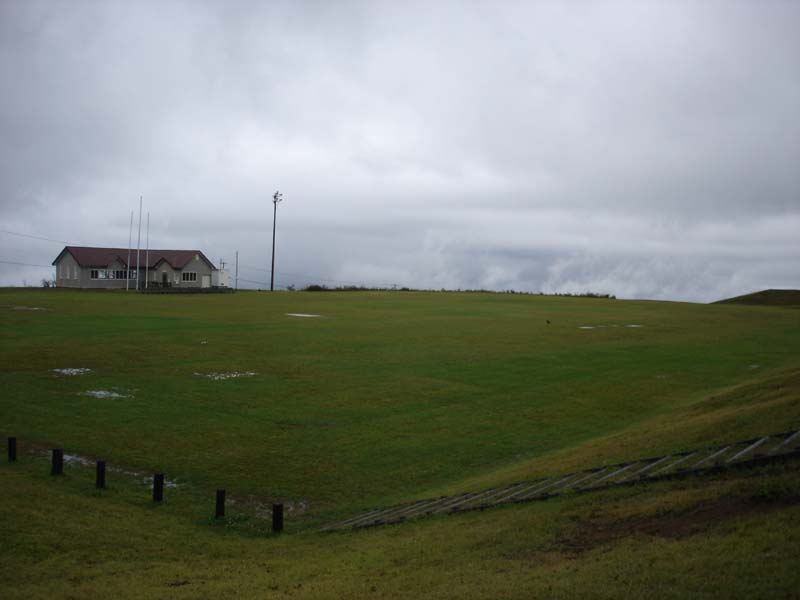 15時頃になって雨が小降りになった。 よかった! ここは一応「総合公園」でキャンプ場以外の施設もある。 すごい広い芝生広場(サッカー場?)、野外ライブステージなど。 室蘭市内を見晴らせる展望台もあった。 けど曇り空であまり良い景色ではなかった。 テントに戻り、また携帯やラジオを聞いたり、クライミングの本を読んだり……