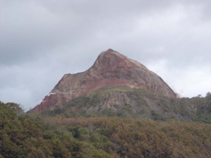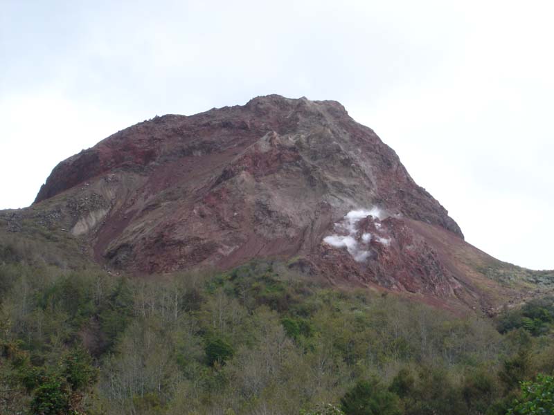 室蘭観光も終わったので、次は「洞爺湖」に向かう。 ここにはクライミングエリアがあるので、そっちメインで。 行く途中に「昭和新山」という活火山があった。 2000年5月に噴火したばかり。 遠くからでもガスが噴出しているのがよくわかる。 近くまで行ってみようと思ったのだが駐車場が有料なのでやめた。 いくつか「硫黄山」というのを見たので、それとおなじようなものでしょう、きっと。