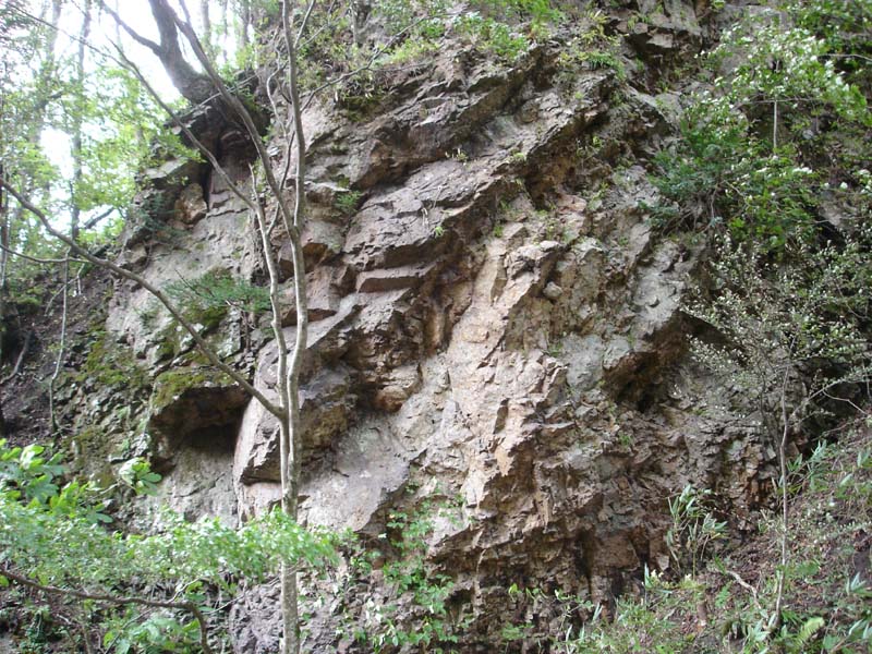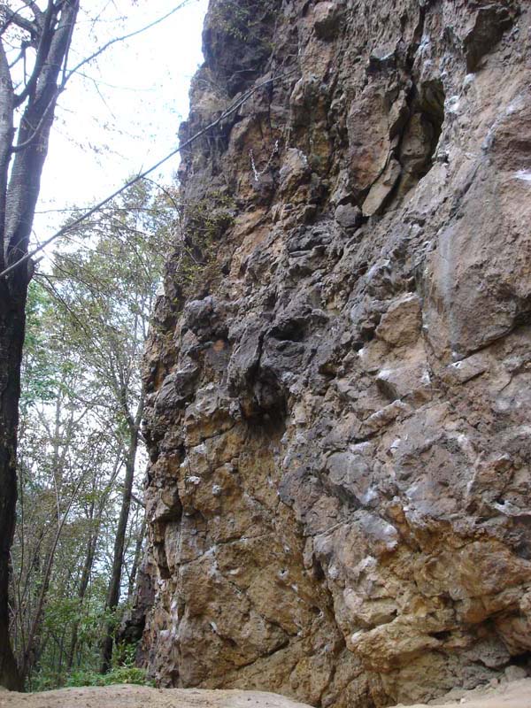 洞爺湖 洞爺湖 クライミングの本にも載ってない場所 遊歩道に倒木 ルーフを見上げる キムンドの滝