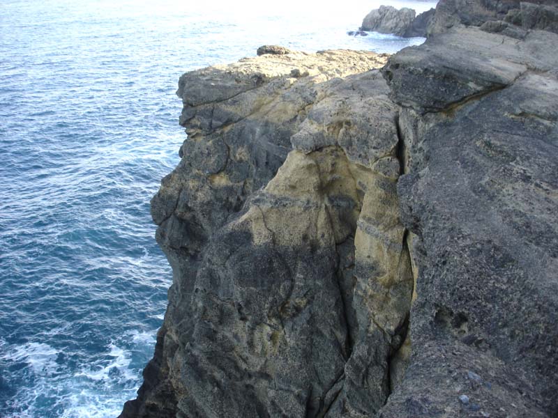そして「ヤセの断崖」という場所に向かう。 駐車場から歩いて1分ほどなのだが、その間に自殺を止める看板がたくさん設置されていた。 それほどここで自殺する人がいるのだろうか…… なかに「自殺をする勇気があるなら生きてみろ!」というのがあった。 だけど自殺しようとしてる人は、それを見て「なに、クソ~」という闘志はわいてこないと思う。 もうゲンナリして、そのまま飛び降りちゃんじゃないかなぁ。 幸い岩場には靴が残されていなかった。 よかった~