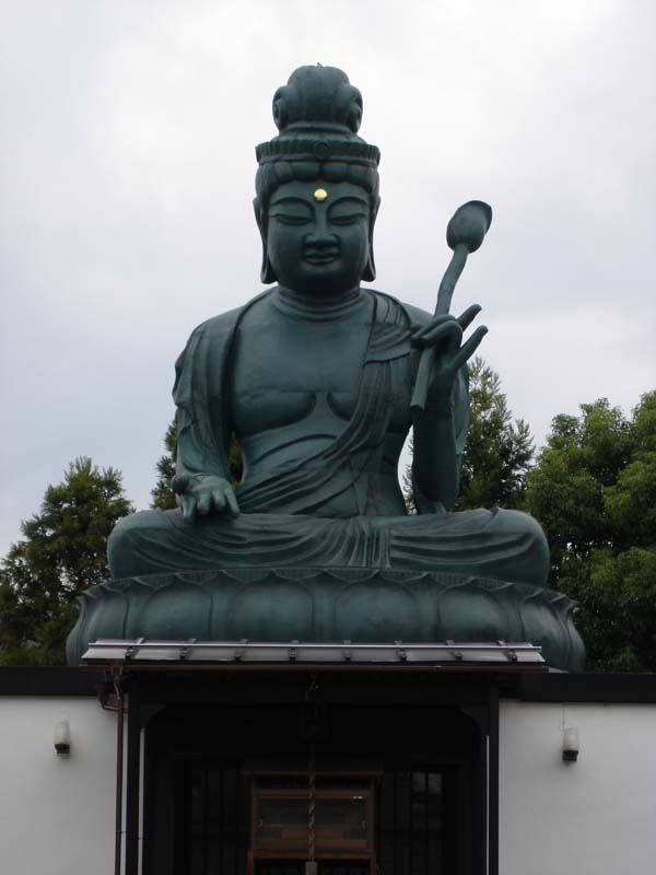 これから日本海沿いにある「東尋坊」という断崖を目指す。 県道5号線をひたすら北上するつもり。 まずは県道を探さなくては。 うろうろしてると「福井大仏」という文字が目に入ってきた。 しかも県道5号線沿いじゃん! これは見るしかないな。 さっそく大仏見学。 昨日のより小さいなぁ。 そもそも大仏ってなんなのだろう? 仏教の信仰の対象になるのかな? よくわからないけれど、大仏目当てに人はあまり集まらないらしい…… 鎌倉はある意味観光地化してるから別として。 昨日の高岡もここも全然人がいない…… そのほうがオレ的には嬉しいけれど。