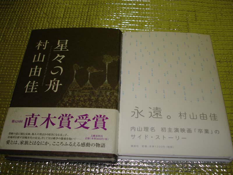 そして本屋に向かう。 少し悩んだが村山由佳の「永遠。」「星々の船」という2冊を購入。 どちらも普通の本(文庫ではない)なので値が張った…