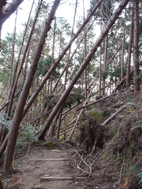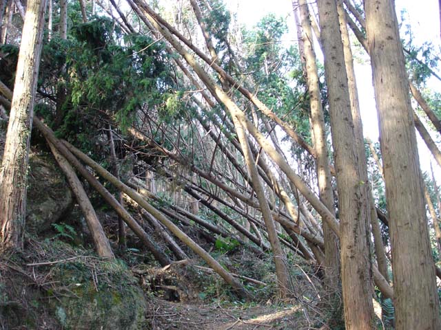 昨日行った城山の台風の被害の写真をアップしてみた。 いつの台風だかわからないけれど、おそらく台風23号かな?? ヒノキの無残な姿……