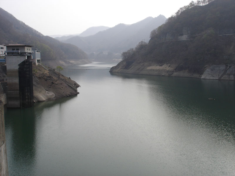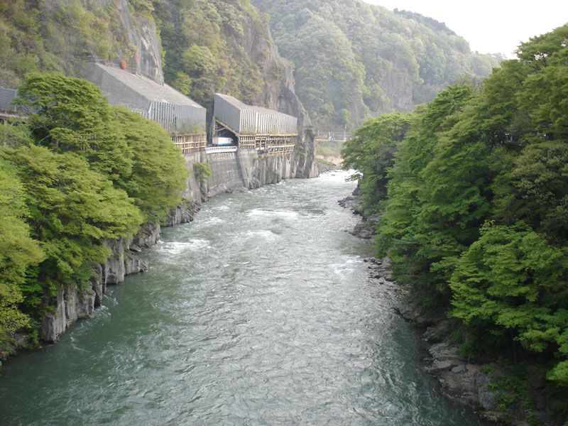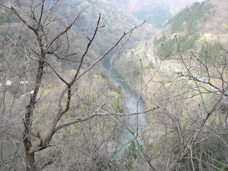 だいぶ走ったところで「奈良俣ダム」という巨大なダムが見えてきた。 高さ158mもあるらしい。 しかし県道がそこまでしか通ることができない。 この先は積雪のため通行止め……