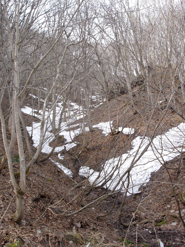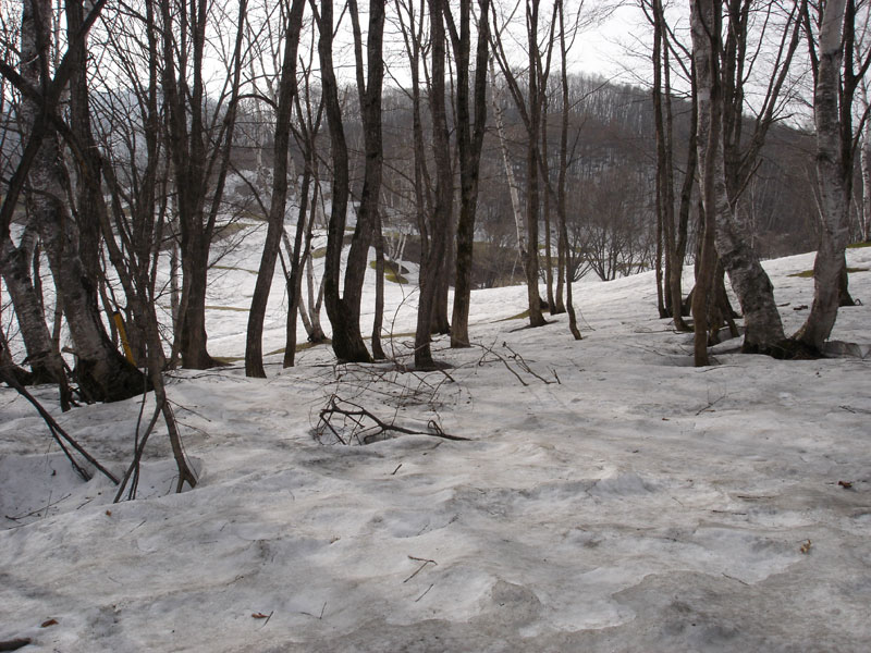 どんどん標高が上がっていき、とても寒い。 さっきの国道での温度表示板の温度が9度だったから、今は4,5度くらいしかないと思う。 雪も普通に残っているし…