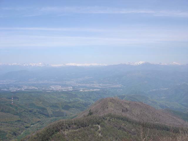 眺めのいいところに移動してお昼ご飯にすることに。 遠くに雪の積もった山が見えて誰かが「谷川連峰だよ」と言っていた。