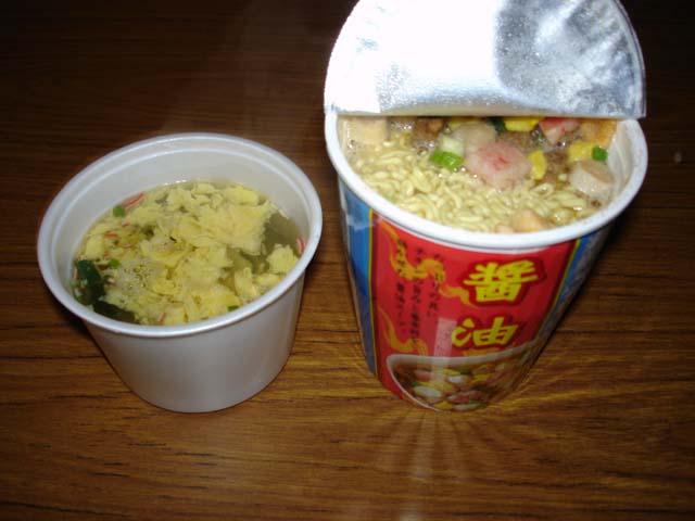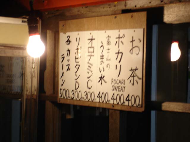 そしてようやく10合目!! 時間は05:56、かなりかかったなぁ。 かなり疲労がたまってお腹がすいたので山小屋で休憩しよう。 少しでも山頂に近づきたいので、ここの山小屋では休憩しないで「富士宮口」の山小屋まで行こう。 噴火口をグルリと3分の1くらい回り山小屋に到着。 さて……何があるかな…… うー! 食べるものがあまりない。。。 16歳以来食べないようにしていたカップラーメン系しか売ってないではないか…… だけど背に腹は変えられぬ、買ってしまおう…… 地上で買ったら300円もしないと思われるものに1400円も払った…… だけどかなり幸せ♪
