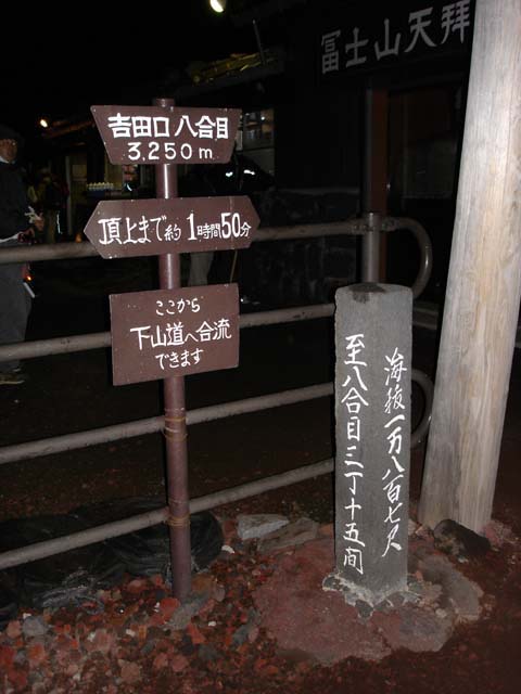 23時に5合目を出発。 電気などついていないので登山道は真っ暗。 驚いたのは、ライトなどの準備をせずに登ってる人がいること。 5人パーティでライトを持ってる人が1人とか…… まさか電灯があるとでも思っていた?
