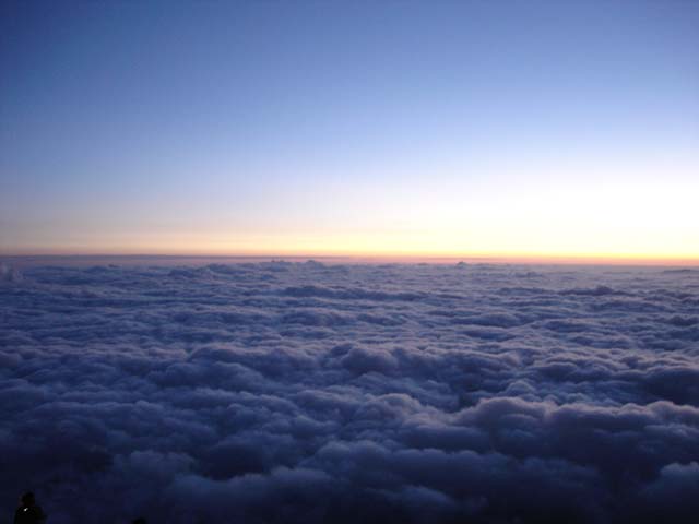 気持ち悪いらしい…… かなり苦しそうだった。 高山病なのかなぁ? 本人は登山を断念して下山するという。 自分がムリというのを他人が引きとめてもどうにもならないので、残念だけど見送ることに。 7合目に救助小屋があったから、そこまでいけば大丈夫かな。