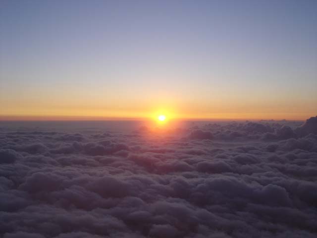 30分ほど待ち日の出を拝む。 今回で4回目の富士登山で、過去3回全て日の出を見るチャンスがあったのに(いずれも山頂にテント泊)、1度も見たことがないような気がする。 地上じゃ絶対見られないような光景で綺麗だった。 そして太陽の恵みをヒシヒシと感じた。 日差しがあるだけでこんなに温度が違うなんて。