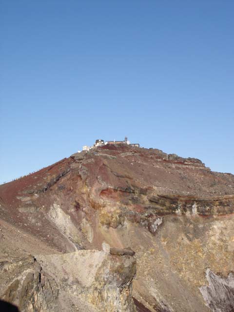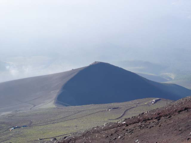 記念写真を撮って、謎の展望台があったので覗いてお鉢巡り残り半周をして登ってきた登山口の10合目まで戻った。 あとは5合目まで下山するだけ。 下山は専用ルートがあるので登ってくる人とすれ違わないのでかなり楽なはず。