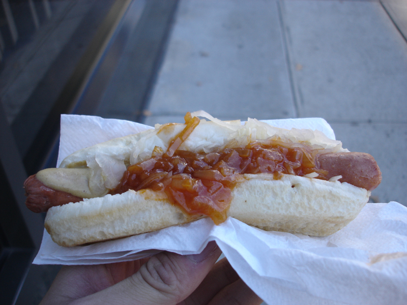 近くに屋台のホットドッグ屋があったので購入する。 1つ1$50¢だった。 こういう地元色の出るものにいろいろ挑戦してみたい。 思ったよりもおいしくてビックリ。