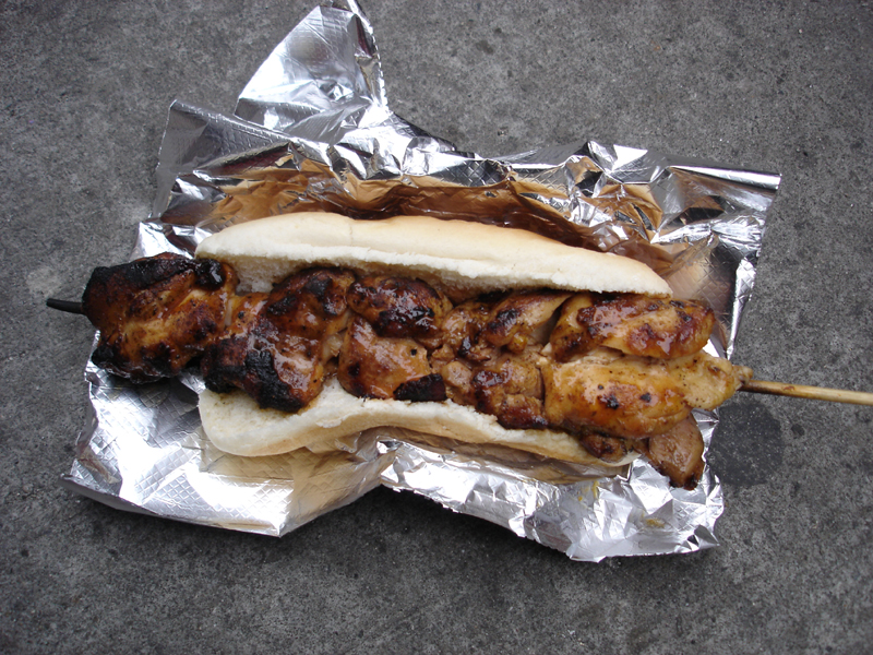 エンパイアステートビルを後にして地下鉄に乗る。 途中で屋台の焼き鳥みたいなものを買った。