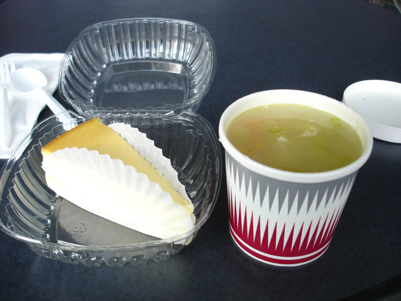 無事セキュリティチェックを通過して、免税店でお土産をかって、軽食コーナーで本日のスープとチーズケーキを食べた。 そして12時30分発の飛行機で日本に向かう。 飛行時間は14時間20分の予定……