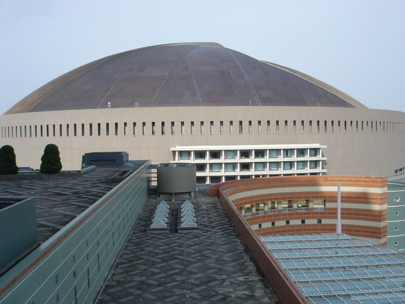 そして12時前にとうとう福岡に着いた! 福岡都市高速の百道で降りて、まずはYahoo!ドームの前を通る。 これが噂のドームかぁ。 たしか高校の修学旅行の時来た記憶があるけれど、全然覚えていない。 ドーム周辺にたくさんの有名人の手形があったくらいしか…