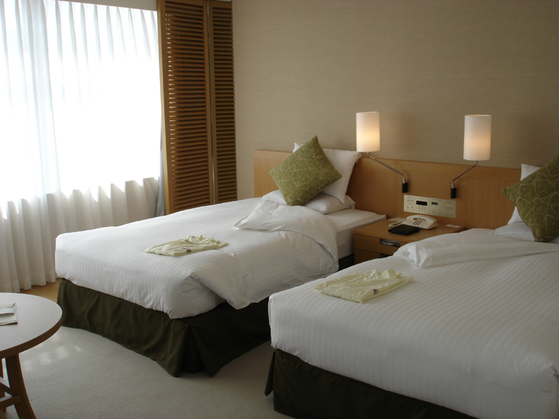 そろそろいい時間になったので、ホテルにチェックインしに行く。 今日泊まるホテルは「JALリゾート シーホーク」という福岡ドームに直結しているホテル。 スタンダードツインを2部屋で予約したのに、なんと同じ料金でデラックスツインを2部屋用意してくれた。 これはすごい!! デラックスだって!!