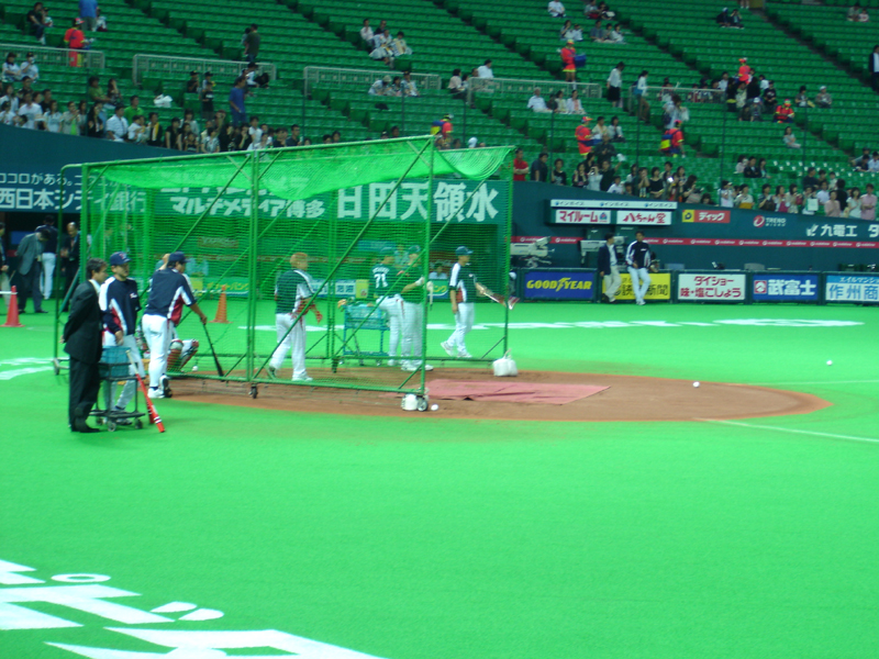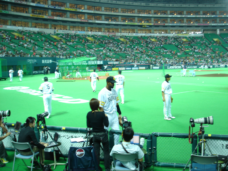 今日の試合は福岡ソフトバンクホークスVS東京ヤクルトスワローズ。 入ったらヤクルトが練習していた。 テレビで見ている有名選手がその辺をうろうろしてる。 これはすごい! そして生で見る野球はとても上手だった。 テレビだとけっこう下手くそだなぁと思うけど、実際はメチャメチャ上手い! ピッチャーの球もテレビだと遅く見えるけど、実際は140kmくらいですごい速い。 すげ~