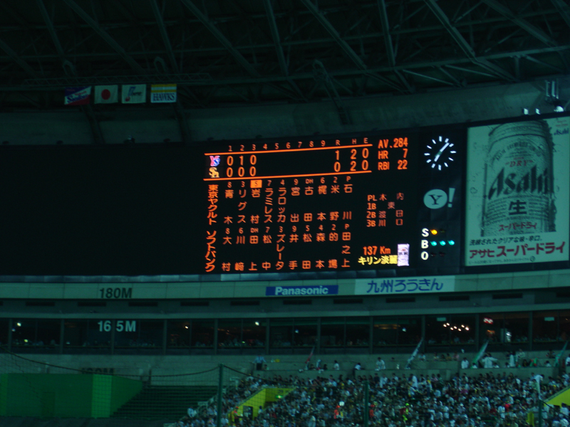 そして18時試合開始。 先制はヤクルト。 古田のタイムリーで1対0。 だけど次の会にソフトバンクが追いつく。 だけど……また1点取られてしまう…… けれどソフトバンクも負けじと追いつく。