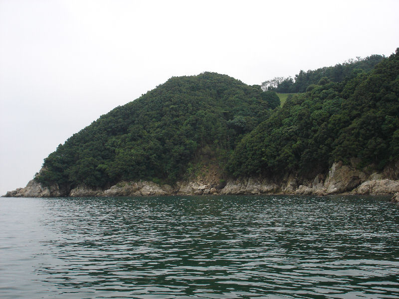 10分くらい走って、陸からじゃ絶対行けないようなところにたどり着いた。 さてと、初潜りがんばりますか。