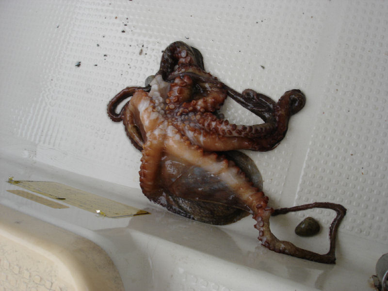 3人で行ったのだけど取れたのは1人だけ。サザエが20個くらい、アワビが10個くらい、タコ2つも取っていた。 これでも少ないほうだって。