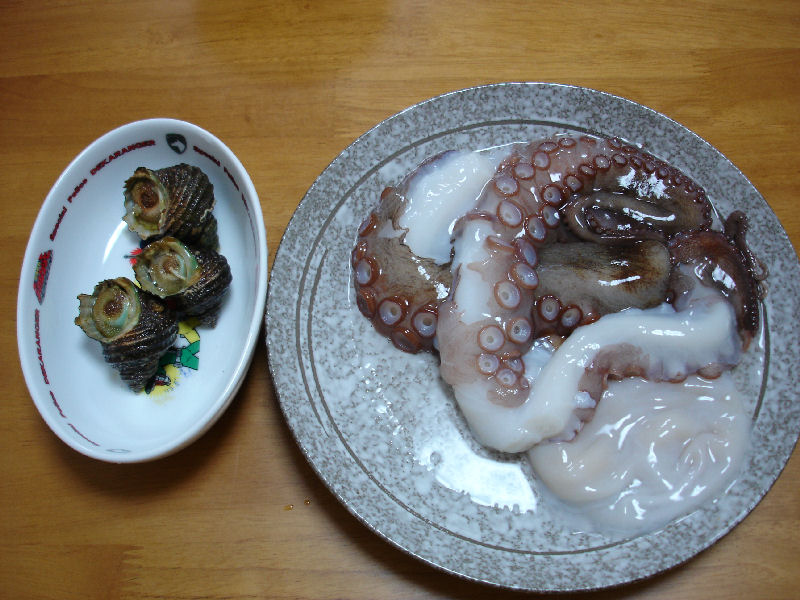 家に帰って昨日のタコとサザエを食べた。 美味しかった♪