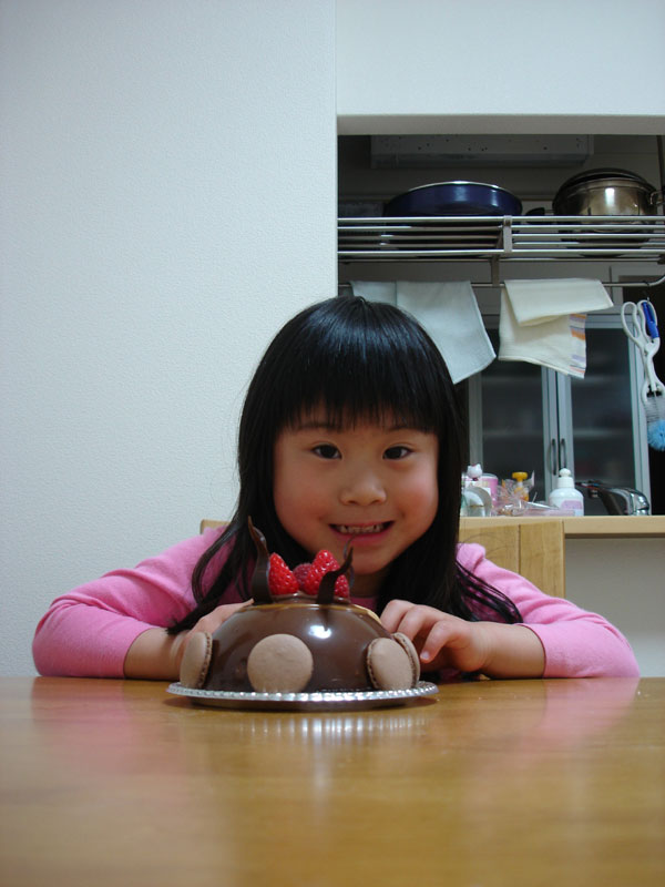 本当はばあちゃんが誕生日ケーキを買ってくれるらしかったのだけど、予約するのを忘れていて我が家にはケーキがない状態。 さすがにかわいそうなので、ルーブまでケーキを買いに行ってきた。 長女の希望でチョコレートケーキ。 だけどホールケーキがムースのしか残っていなくて、チョコレートムースのケーキになってしまった。
