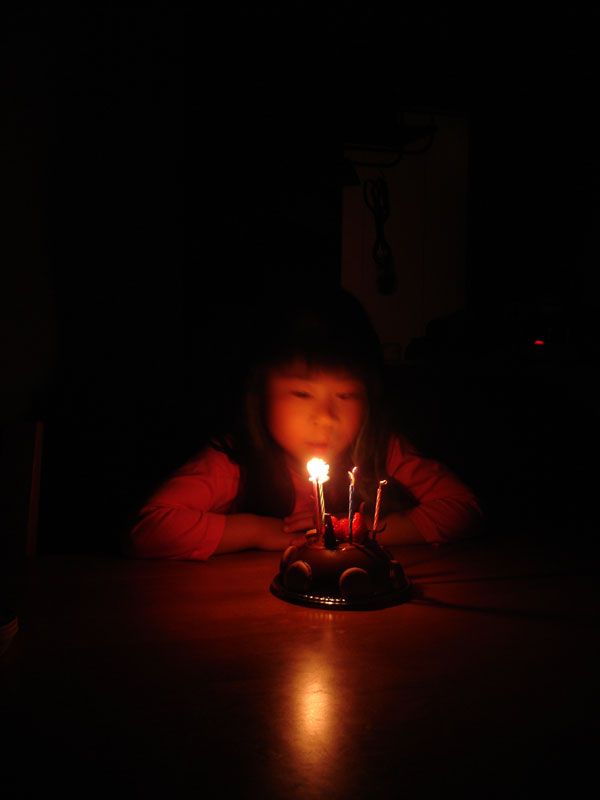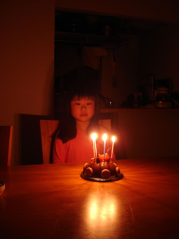 そしてプチ誕生日パーティ。 5本のろうそくを吹き消しておいしそうにケーキを食べていた。 誕生日おめでとう。