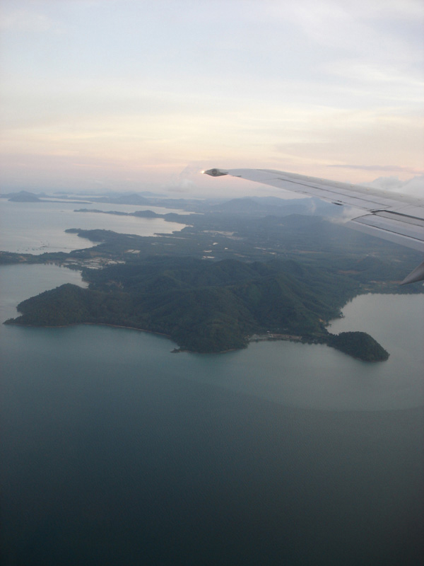 一時間ほど待って、飛行機に乗り込む。 この飛行機が小さい。 左三席、右三席しかない。 しかも半分以上空席。 なので窓際の席に移動した。 ここだったら写真が撮れる♪ クアラルンプールからプーケットまでは1時間半ほどの空の旅。