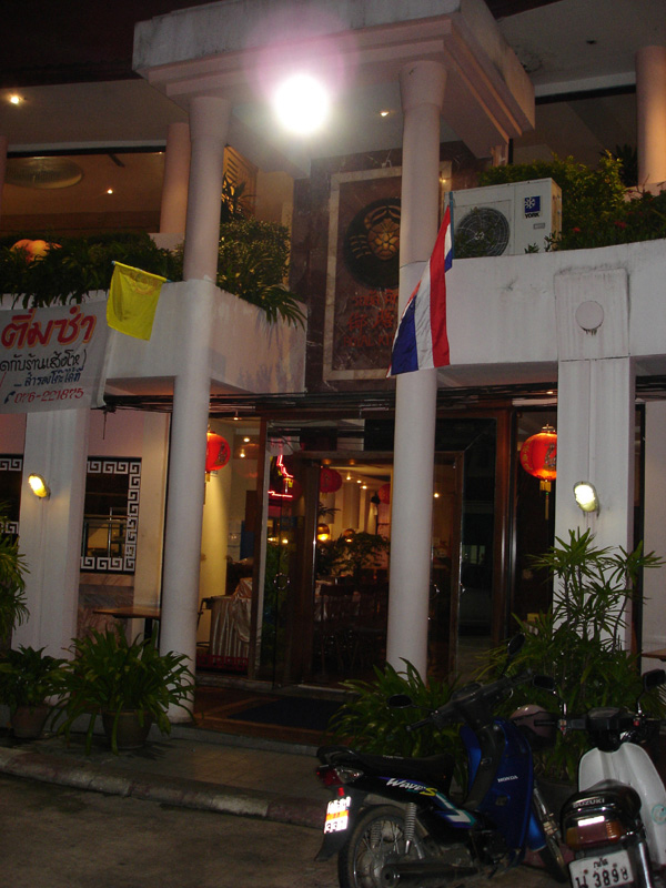 映画「ザ・ビーチ」で話題のピピ島も津波以後は悲惨な状況らしい。 津波前までは各旅行会社で船を所持していたのだが、津波以降では合同の定期便しかないらしい。 なので、いろんなグループと共同の船で行って、時間になったら帰る。 なのでほとんど観光も出来ないし、ビーチもゴミだらけで汚いんだって。 だからムーさんはあまりオススメではないらしい。 ピピ島に行くなら、コーラル島の方がいいらしい。 そんなことを聞いているうちに夕食の会場である「ROYAL KITCHEN」という広東料理屋に到着した。