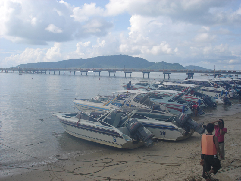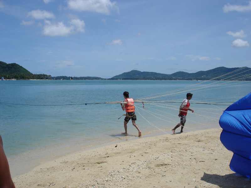 それからパラセーリングに向かう。 干潮になってしまったので、コーラル島では出来ない。 なのでモーターボートで別の島まで連れて行かれる。 「Koh Lon」の方に戻り、引き潮になると現れる浅瀬に連れて行かれた。