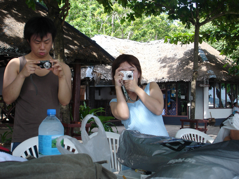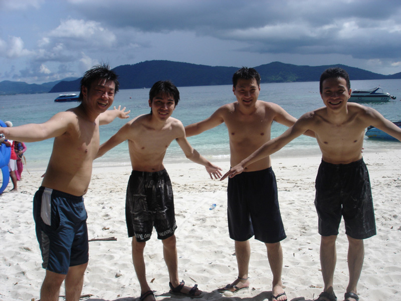 ご飯を食べてお腹もいっぱいになり、体験ダイビングをすることになった。 受付にいったら、タイ人の人が3人ほど集まってテレビを見ている。 「5分ほど待ってくれ」と言われたので待つ。 そして5分経った…… どうやらテレビが終わったらしい…… テレビを見るためにお客さんを待たせる国、タイ。 素晴らしいね! 「ダイビングのライセンス持ってる?」と聞かれたがみんな持ってない。 すると「ガイドはなんて人?」と聞かれたので「ムーさん」と伝えた。 するとムーさんを探しに行った。 しかし見つからなかったらしく戻ってきた。 どうやら言葉が通じないとダイビングはできないらしい。 けっきょく断られてしまった。