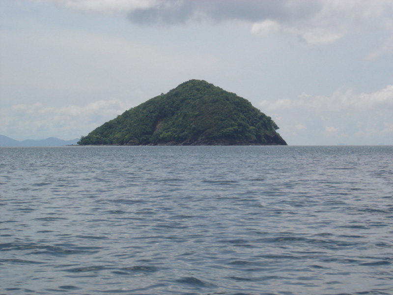 モーターボートが速度を上げて走り出す。 すごい早い。 そしてすごい気持ちがいい! 左手には島が見える。 「Koh Lon(ロン島)」という名前で、無人島のように見えるけど、1つの村があり、人口300人らしい。 ガイドのムーさん情報。 「Koh Lon」を通り越して、目の前にはコーラル島が見えてきた。