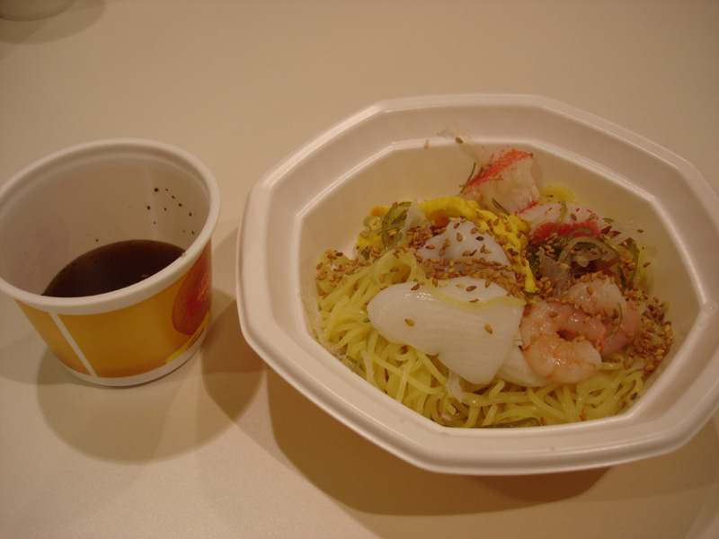 3階のフードコーナーのミスタードーナツで「涼風麺」という冷やし中華みたいなものを食べる。 400円だったのに、量がけっこう少なかった……