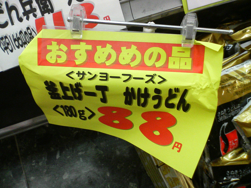 おすめめの品 投稿日時: 2007/07/07 土曜日 投稿者: U 返信 今日は土曜だけど仕事があったので、会社に行って、コンビニでお昼を食べた。 仕事が終わったあと、夕飯の買い物に近所のマルナカ某店に行った。 夕飯をなに食べようかとウロウロしていたら、こんな商品を発見! これは…………かなり笑ってしまった。 まぁこのおすめめの品は買わなかったけれど。