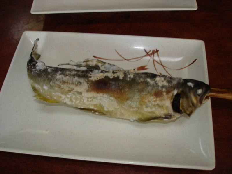 最後に、おみやげ物やさんで、「鮎の塩焼き」を食べる。 一目見てからずっと食べたかったんだよね……、けっこう塩がきいていて美味しい! 幸せ♪