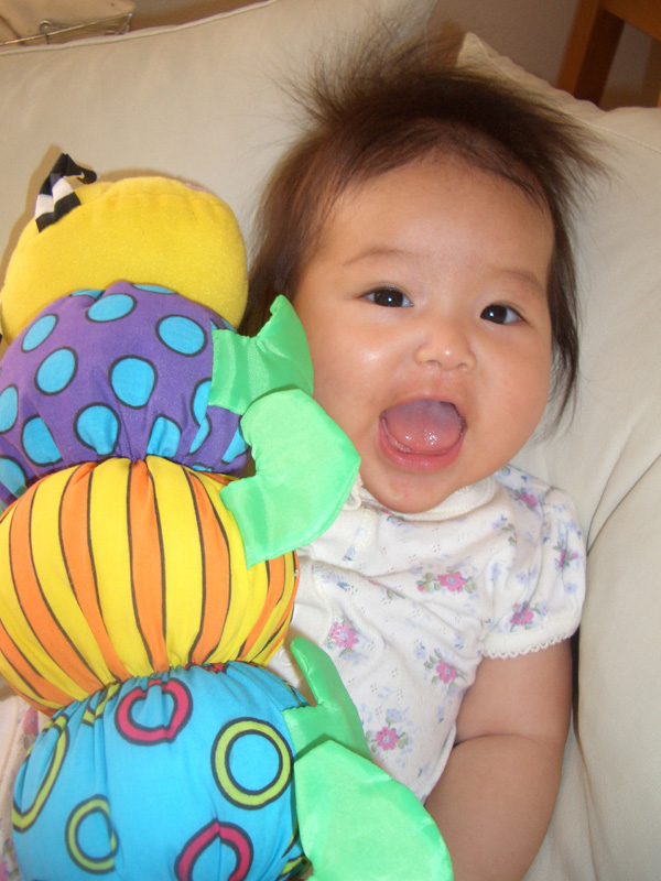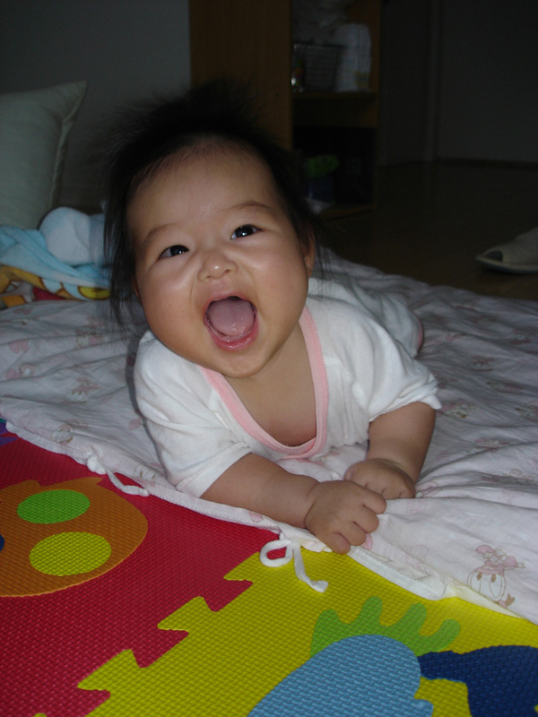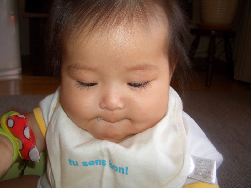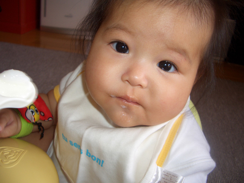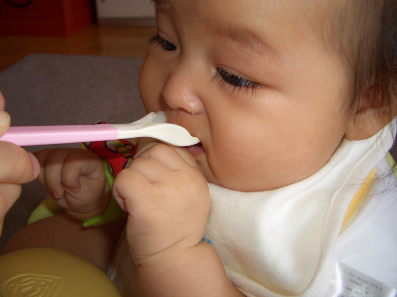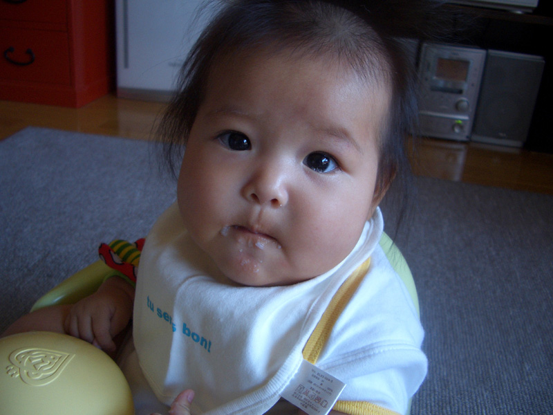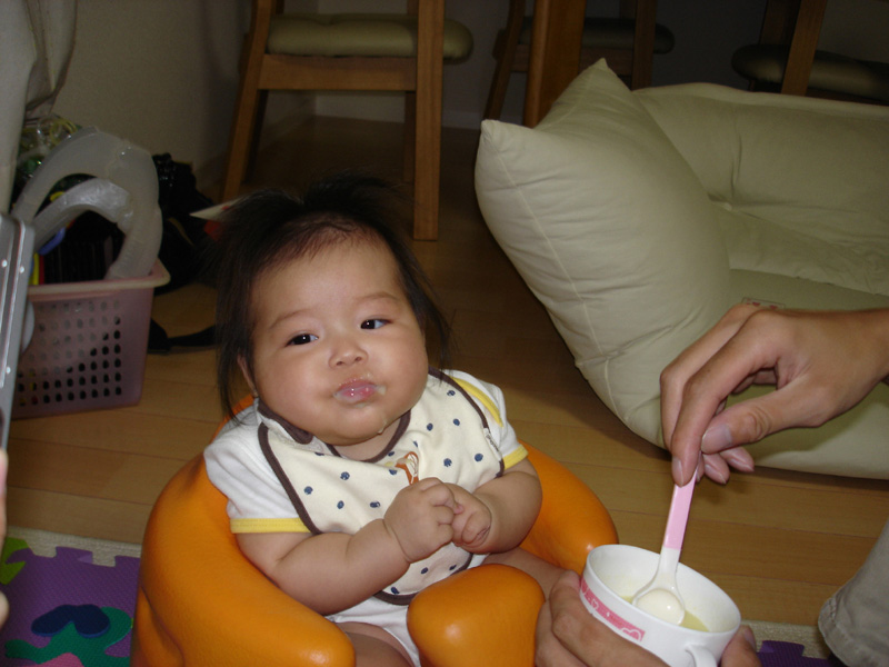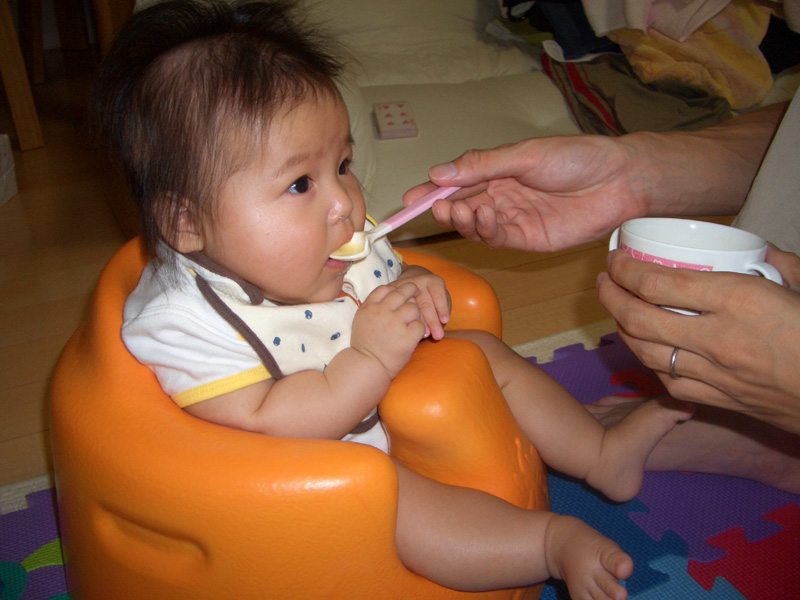 それと今日は次女に離乳食をあげた。 オレは初めてあげる。 すりつぶしたご飯をスプーンで食べさせる。 食べ物だとわかっているのかわからないけれど、口元に持っていくと、口をあけて食べようとする。 そのしぐさがかわいい。