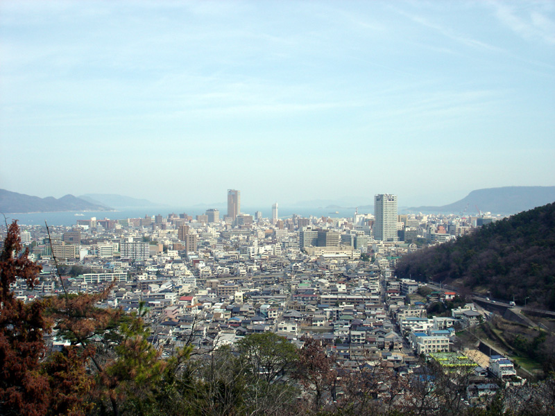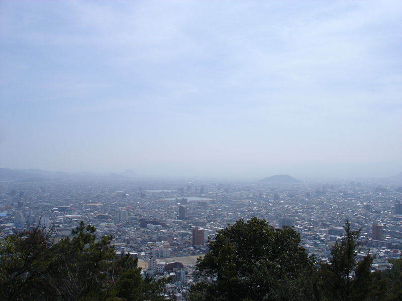 今歩いている場所がちょうど栗林公園の裏あたりだろうか? 高松市東部の景色がすごい良い!
