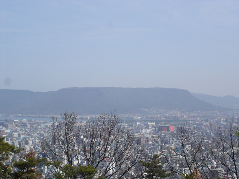 さーて、登ろう♪ すぐに「紫雲の広場」という眺めのよい場所に着いた。 高松の町が一望できる。 うーん、最高!