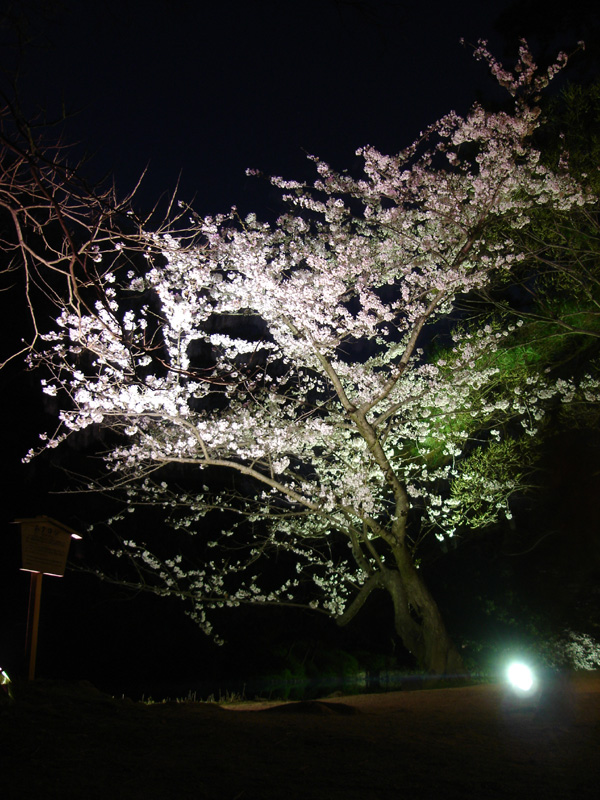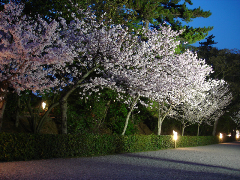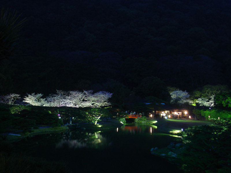 昼から夕方まで仕事をして、栗林公園の「春のライトアップ」を見に行った。 季節的にお花見の季節。 栗林公園の駐車場には長蛇の列が…… 国道は大渋滞…… 原付なので駐輪場に止めて、さっそく中へ。