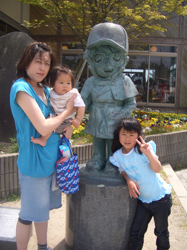 アニメ「名探偵コナン」の作者の町らしく、コナンの記念館があった。 が、入らなかったけど…… 次女にご飯だけあげてすぐ出発。