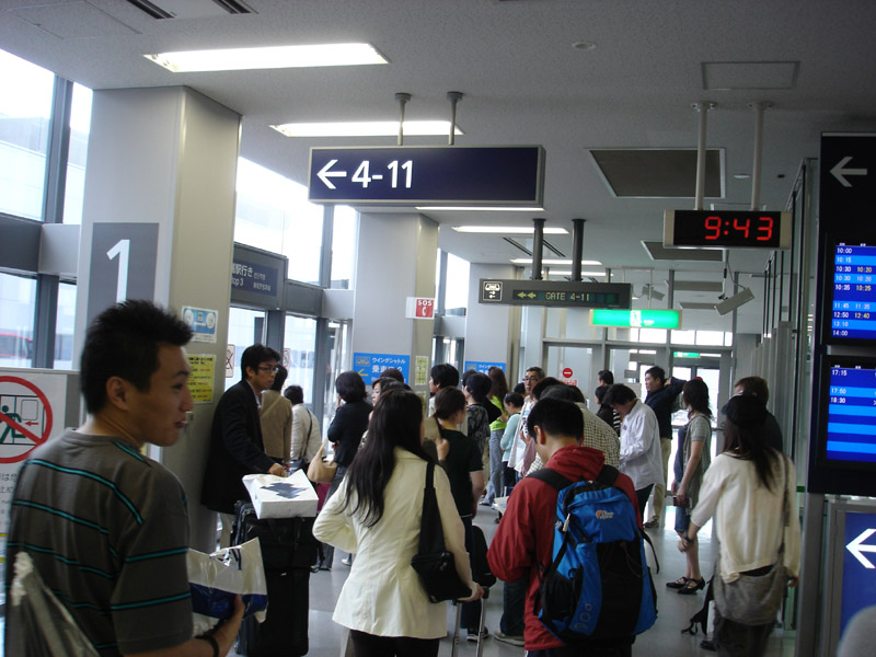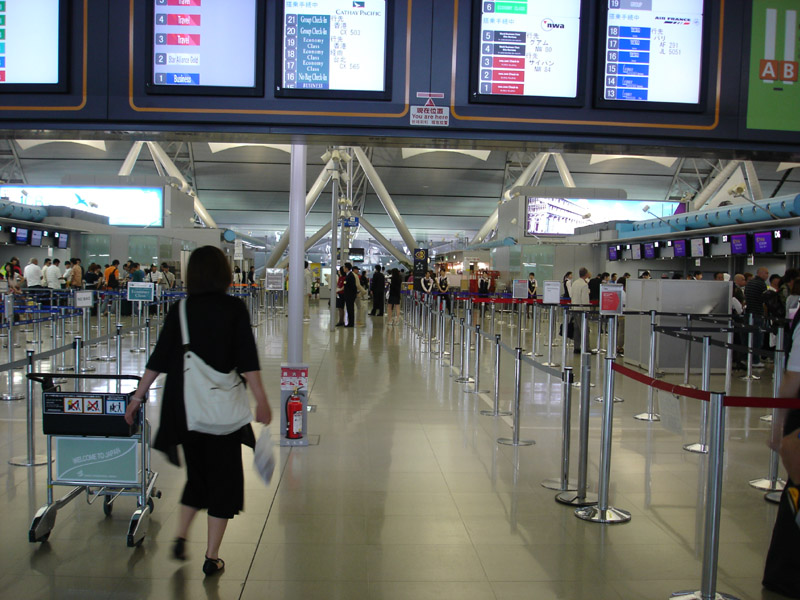 今回の航空会社は「ノースウエスト航空」。 航空会社の搭乗手続きをする場所の前で、東京組、広島組、大阪組と合流。 そして搭乗手続きを済ます。