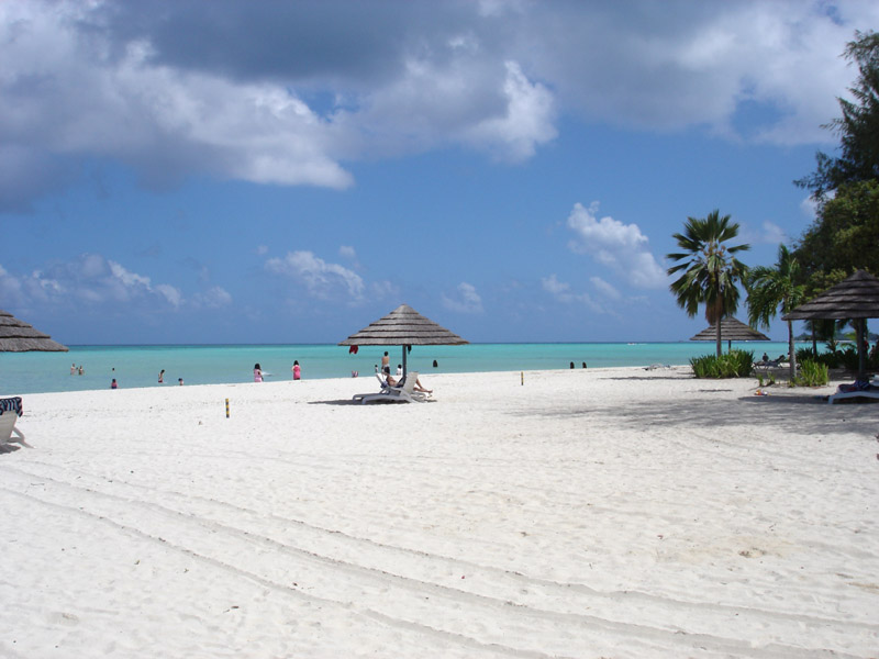 ここのビーチはホテル専用なのかな? 売店とビーチバレーコートがあった。 泳いでる人もけっこういた。