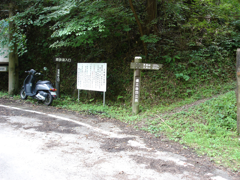 国道193号線から、県道7号線を4km走り、県道153号線を4km走り登山口に到着。 近くに自然センターとキャンプ場がありトイレと駐車場は確保できるね。 まぁ原付なので関係ないけれど。