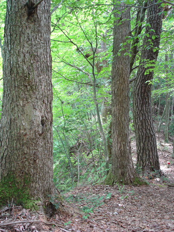 木々が多い茂っているので直射日光は防げるので、それほど暑くは感じないかな。 しかし……あまり人が歩いていないせいか、クモの巣がすごい。 20mくらい歩くたびにクモの巣にひっかかる。 体につくのが気になるので、長袖を着て歩いた…… が、暑すぎてすぐに断念。 クモの巣がつくのは諦めよう… 頭につかないように帽子だけはかぶって…