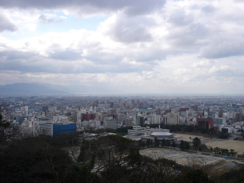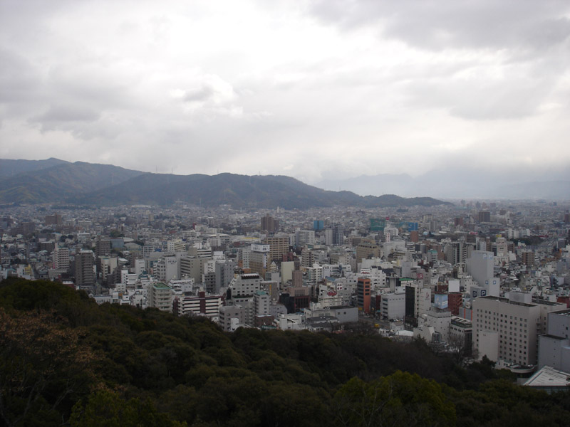 そしてすぐにお城のところに到着。 遠くまで見えていい景色。 ただ青空だったらもっと素晴らしいんだろうな。